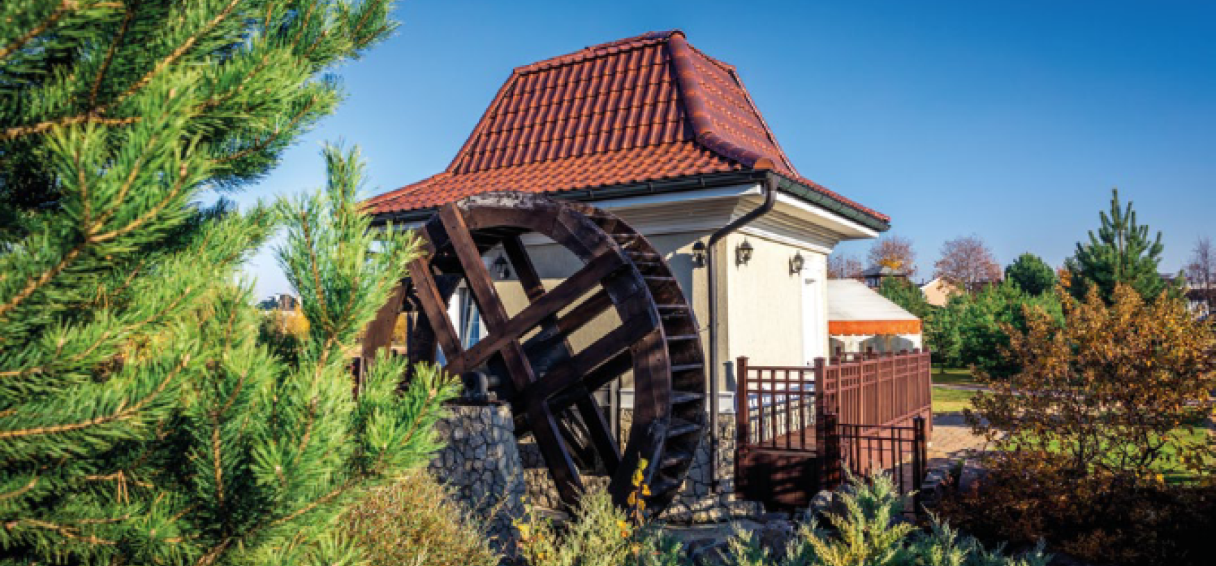 На территории коттеджного поселка Онегино находится уютный ресторан «Водяная мельница»